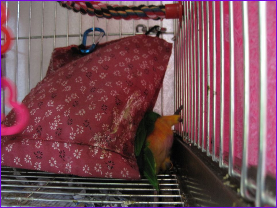 ずん吉も、ケージの中で毛づくろいしたり、クチバシをジョリジョリしておねむモード