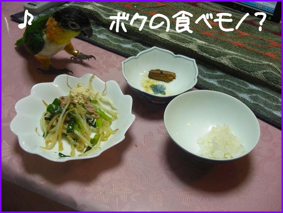 人間もインコも激しい運動後はお腹が減るようで、お食事タイム♪