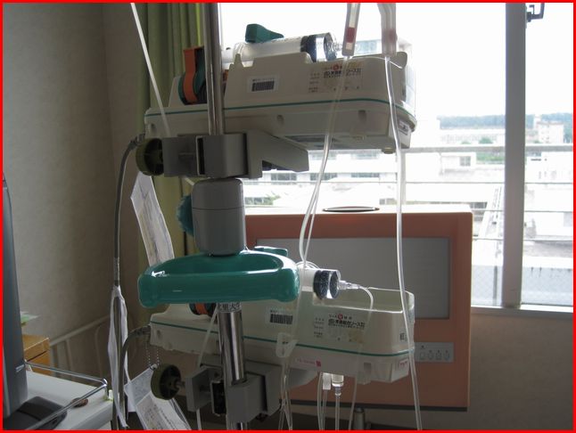 化学療法のときなんかは、点滴が6個ぐらいぶら下がってて、すごいことになってたから