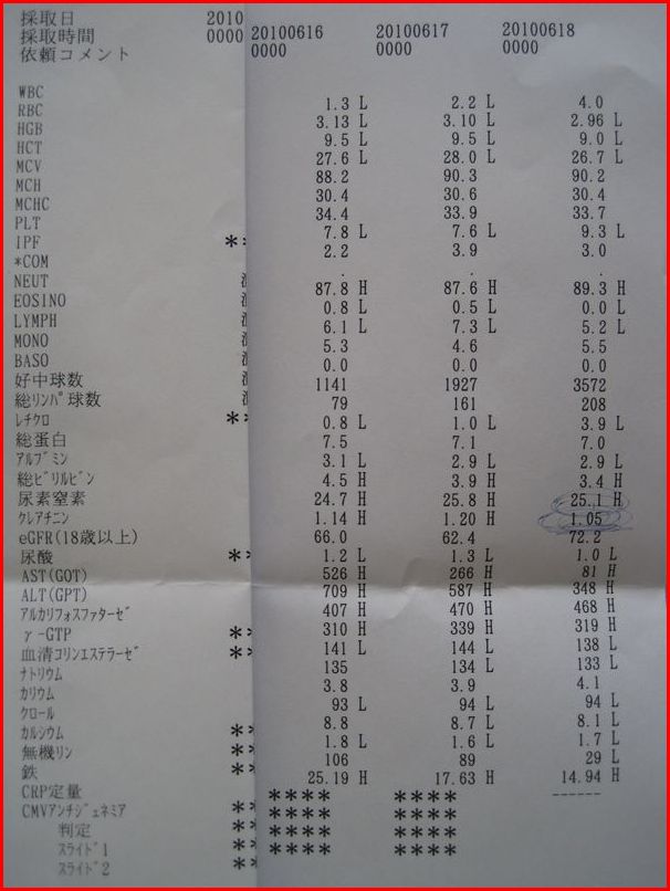 現状では白血球(免疫機能)もほぼ無いに等しく、検査もできないのです。