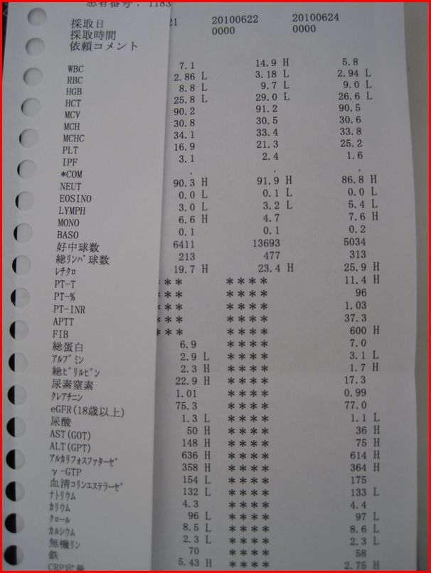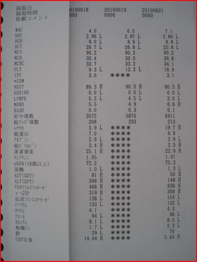 ようやく血液データが回復して来ました。