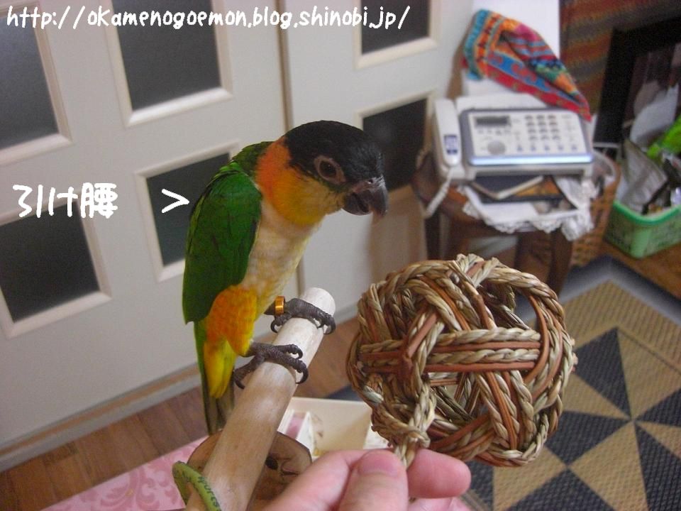 【犯行現場に偶然居合わせたタワシインコの"たわし"さん】