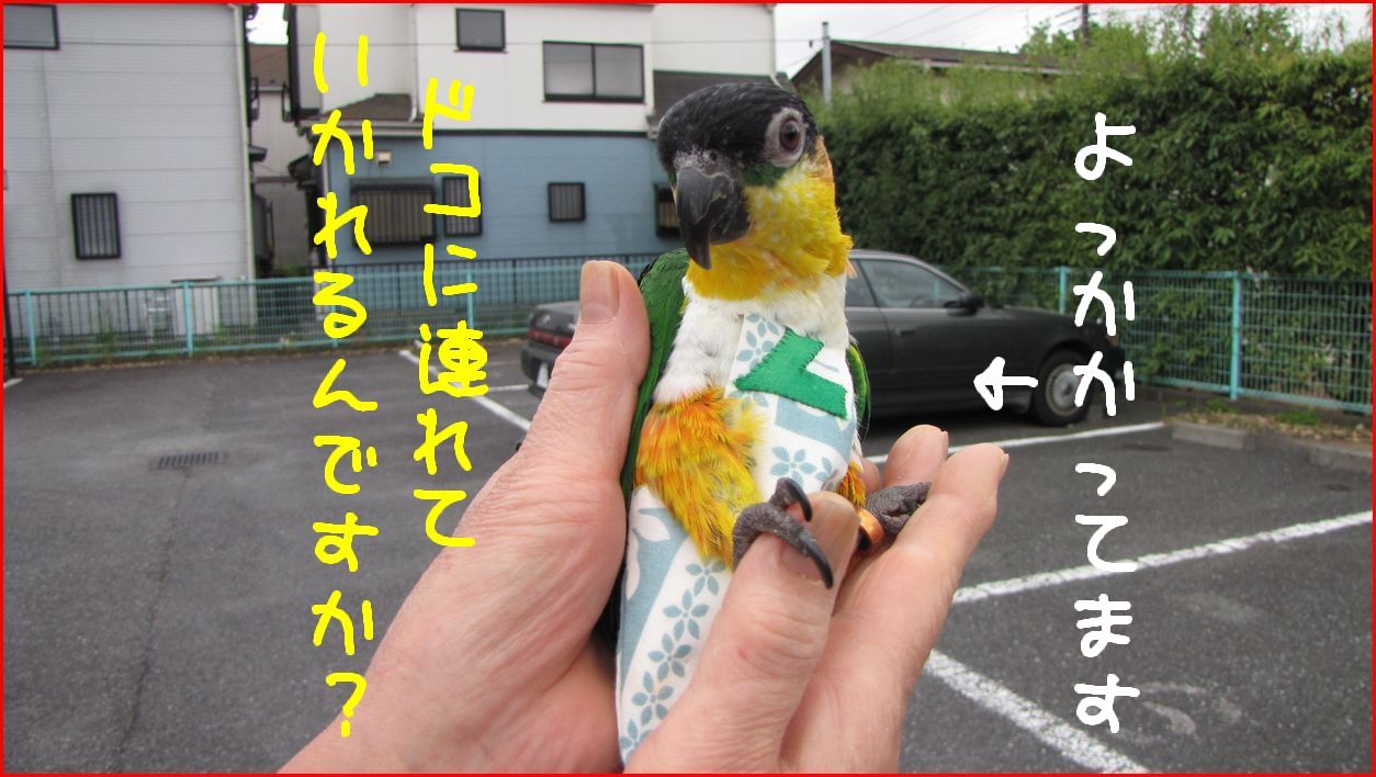 ベランダで干したり、近場の公園に散歩したり、車で出かけたり・・・・。