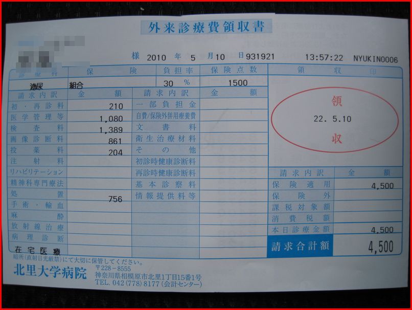本日、5月10日(月)北里大学病院で検査・診察してきました。