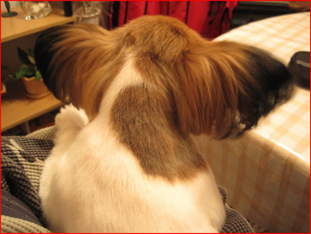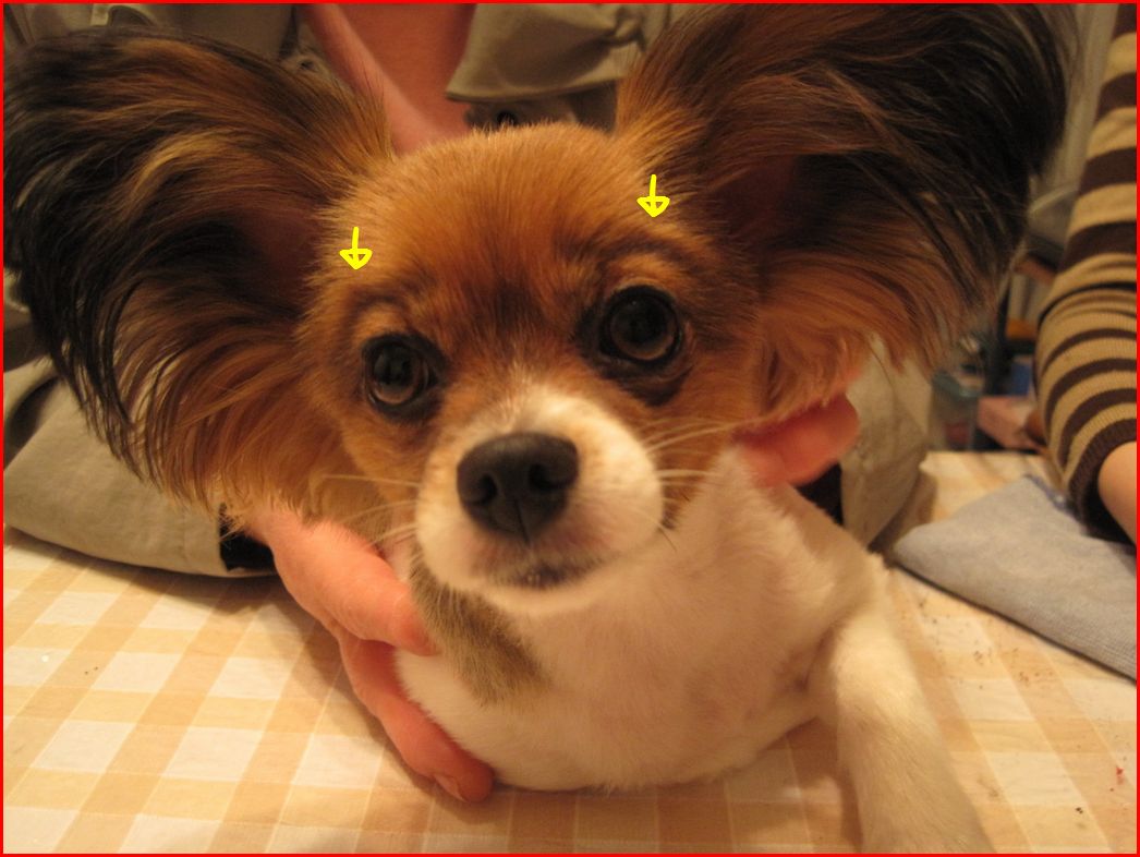 ネットで調べて見ると、同じ柄のパピヨンは、どの子もまゆ毛がーっ。d( ̄▽ ̄;)