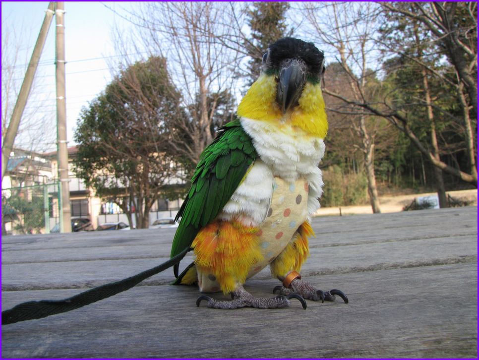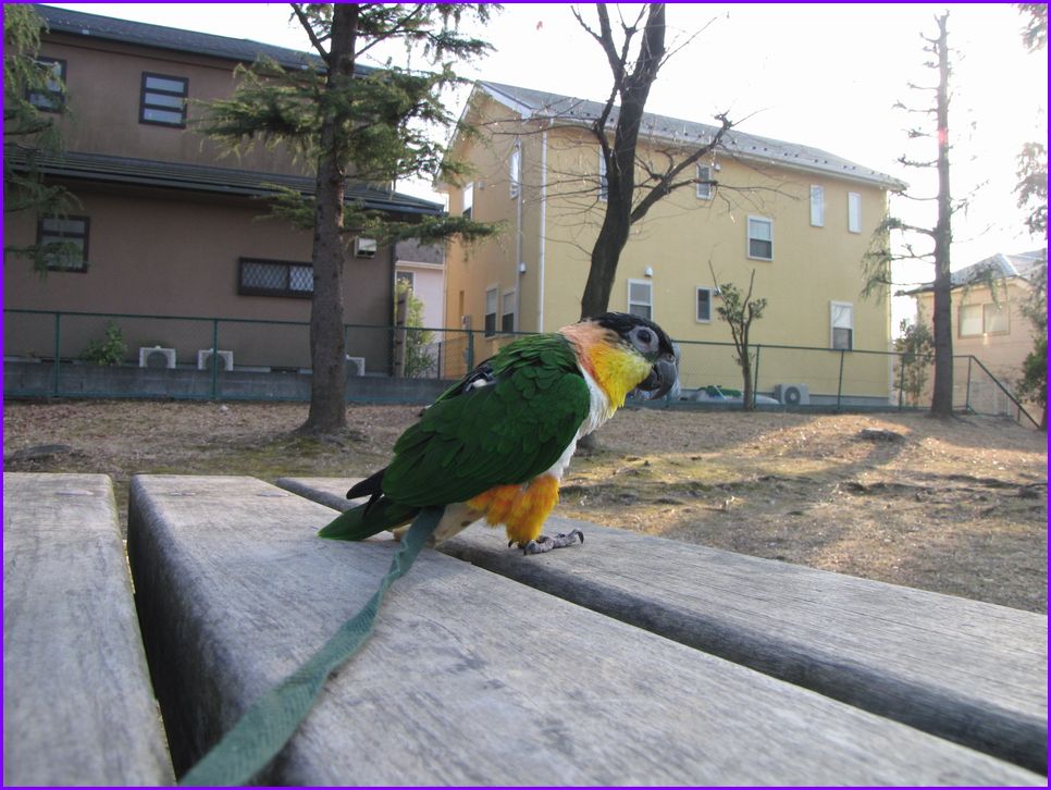 しばらくしたら、毛づくろいをしたり、さえずりしたり落ち着いてきてきたので近くの公園へ・・・