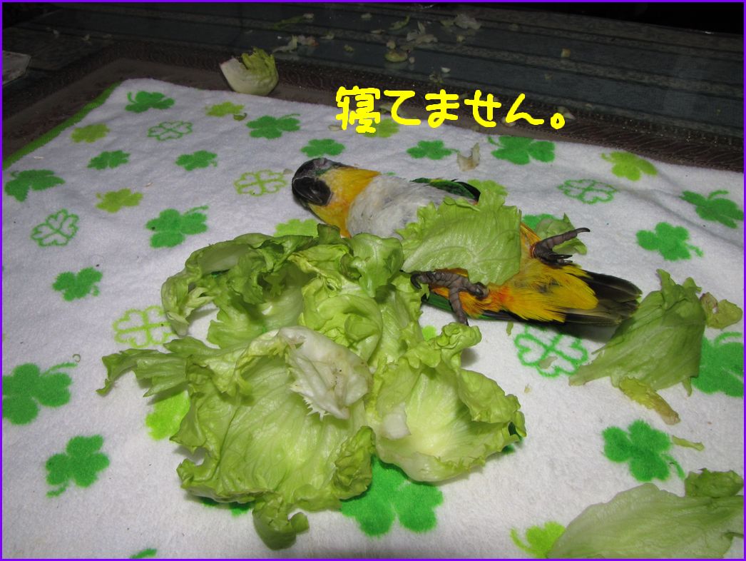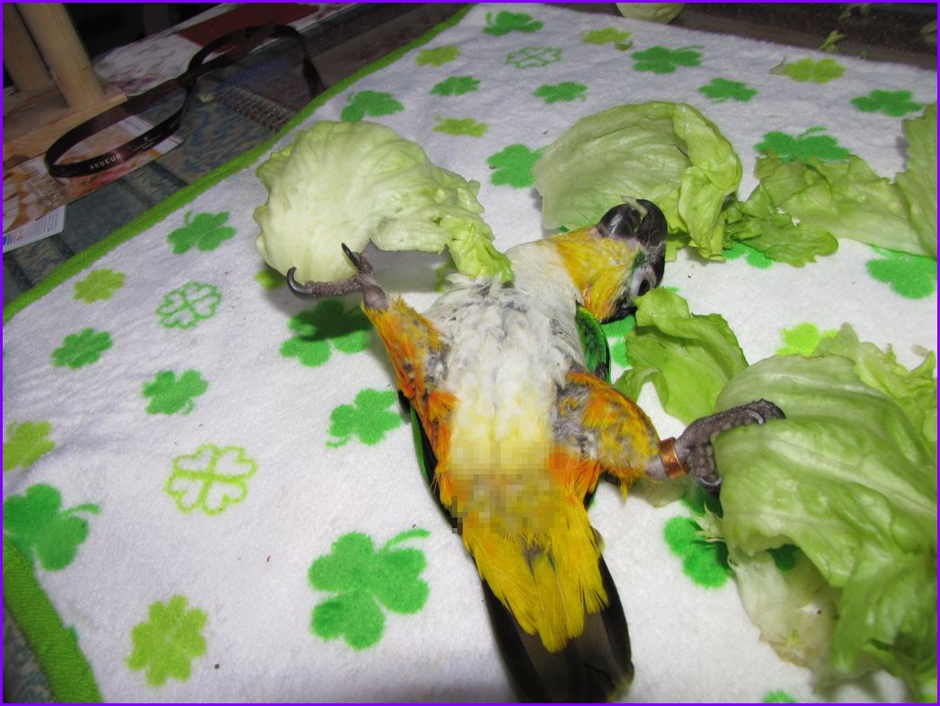両足にレタス、クチバシにもレタス・・・・欲張りずん吉