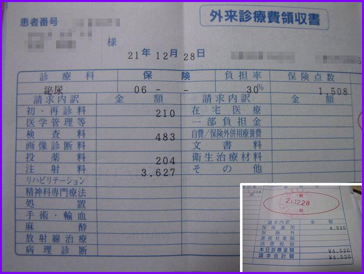入院中、結構打ってたけど~こんなに高価なものとは思いもしませんでした。