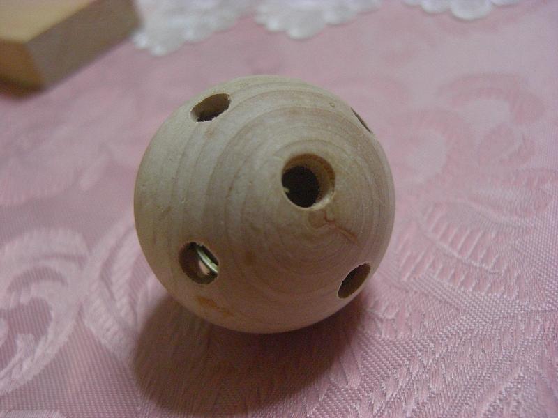 今日、出先で買ってきたボール型のおもちゃ(木製で中に鈴)