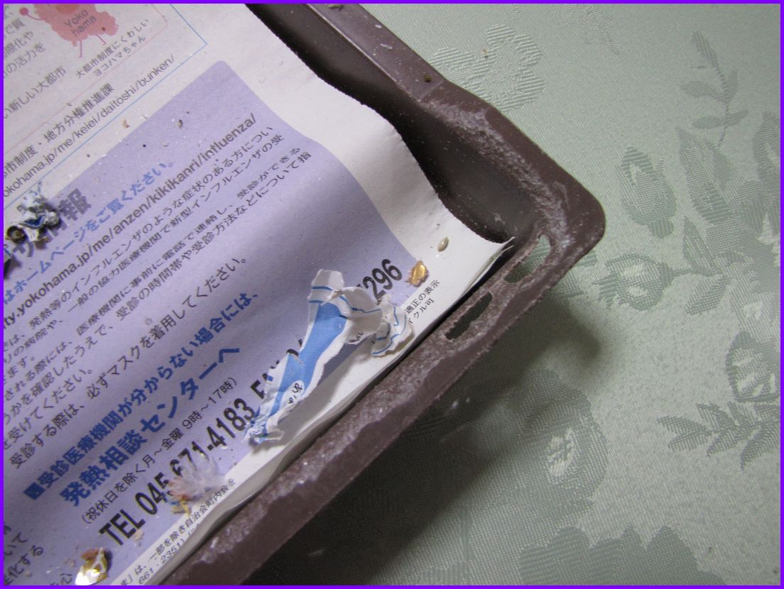 たまに、残骸と共に爆弾も投下されているので 掃除が遅れるとテーブルカバーにこびり付いて大変な事になったりします。