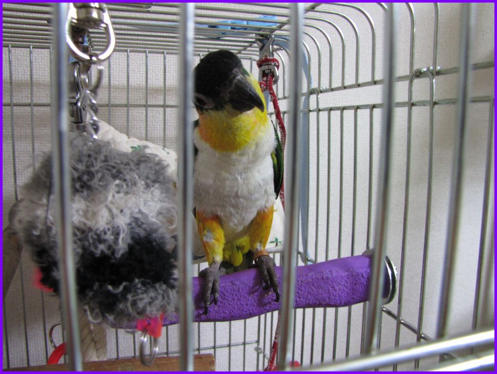 ※ケージの中では、かずさんからいただいたオモチャで大暴れしながら遊んでました!