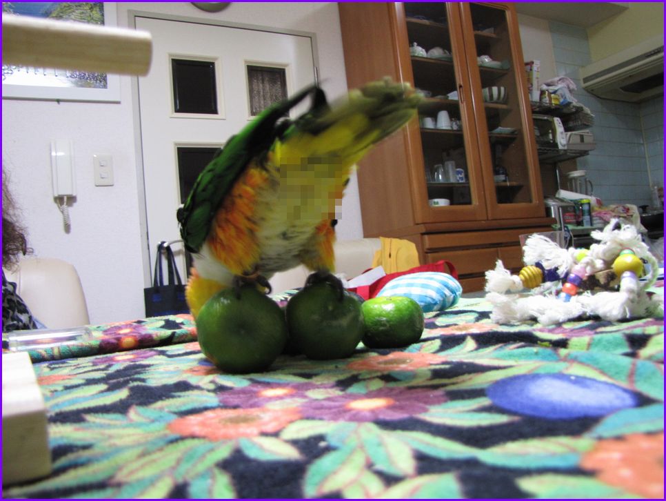 しかもシークヮーサーの皮はかなり硬いのでクチバシが刺さりません。